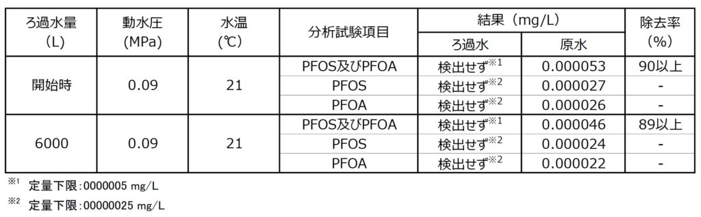 ◾️PFOSおよび PFOA ろ過能力試験結果対象商品