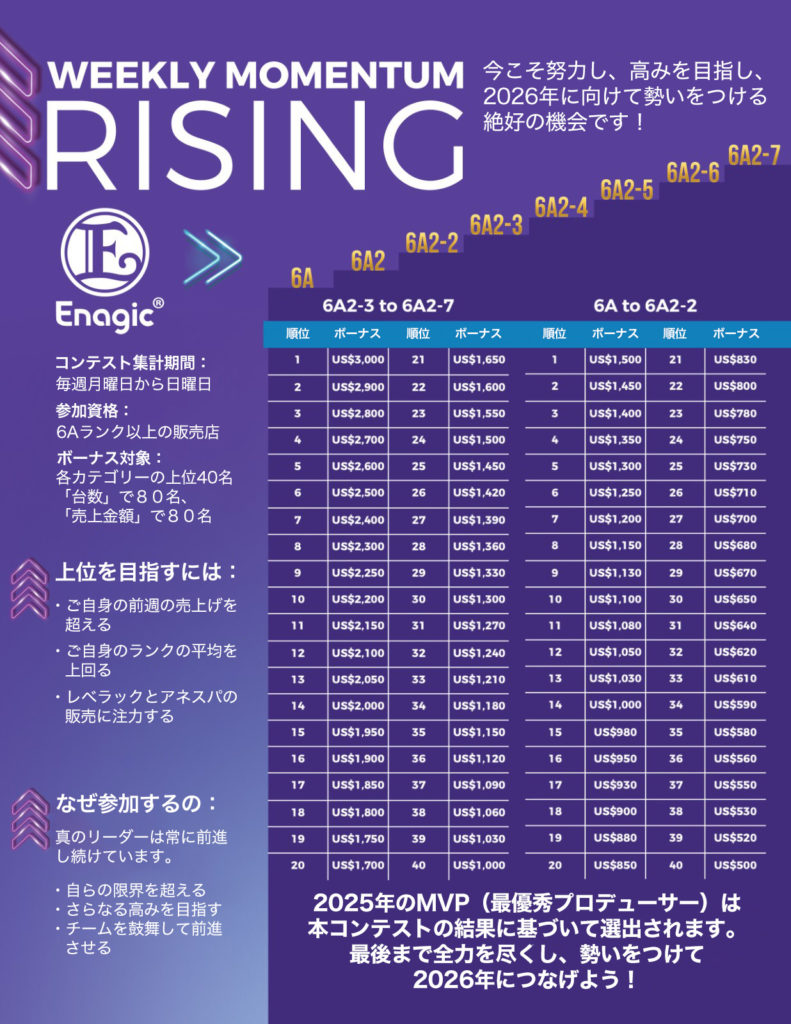 この一年を力強く締めくくるために、6A以上のリーダーを対象とした新しいチャレンジ、「Weekly Momentum Rising Contest」を開催!