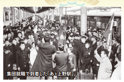 「集団就職」とは、昭和史の中のある時代を象徴する“歴史的語彙”で、もはや「死語」といってもいいだろう。 戦 後まもなくより、高度経済成長期にかけて全国各地から都市へと、中学卒、高校卒の若者たちが就職のため集団で移動する姿を指した言葉 だ。とくに東北地方から首都圏を目指すために特別に編成された専用の「集団就職列車」は有名だった。中でも年度替わりの春先に、おびただしい若者が乗った列車が到着する上野駅の光景は風物詩としてもよく知られていた。 基本的には農家の次男、三男など 農業で生活が成り立たない層が、都市部でなかなか労働力を確保できない中小企業に就職する、という姿が一般的だった。大学への進学率が1割程度で、中学卒で就職することがごく当たり前だった当時、地方からやって来て、町工場や商店で働く若い労働者がたくさん存在したのだ。彼ら彼女らこそ、50年代から始まった日本の経済成長を現場で支えた人たちと言えよう。