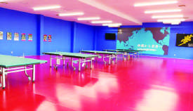 1階には卓球ショップを完備し、1、2階ともにクーラーを備え、シャワー室も設けられました。さらに1、2階とも大型テレビジョンを置き、生徒が自分のプレーを画像で見たり、大きな大会を一緒に見て楽しんだりすることもできます。