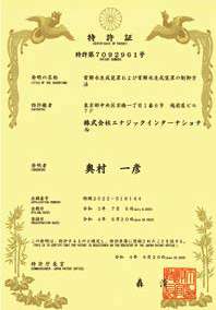 エナジックインターナショナルは6月20日、奥村一彦専務を発明者として、「電解水生成装置および電解水生成装置の制御方法」の特許を取得しました。昨年7月に特許の出願をして以来、1年弱という異例のスピード登録となりました。