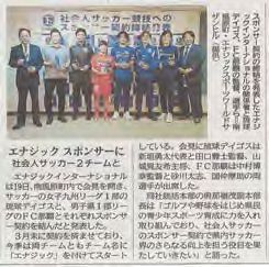 5月19日、(株)エナジックインターナショナルは記者会見を開き、サッカーの女子九州リーグ1部の琉球デイゴス及び男子県1部リーグのFC那覇と、それぞれスポンサー契約を結んだことを発表しました。スポーツを通じた青少年の健全な育成に力を注ぐエナジックの新たな活動で、すでに両チームとも「エナジック琉球デイゴス」「那覇FC」という名称で試合をおこなっています。
