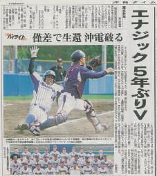 3月15日から23日まで沖縄県で開催された、硬式野球の第38回「石川逢篤杯争奪大会」(出場9チーム)で、エナジック硬式野球部がみごと優勝を果たしました。5年ぶり2度目の快挙で、決勝では沖縄社会人野球の最強かつ長年のライバル、沖縄電力を10回裏6対5のサヨナラで振り切りました。石嶺和彦監督は勝因について、「我慢の守備が最終盤に生きた」と語り、続けて「日本選手権、都市対抗戦に向けて大きな自信になった」と選手の健闘をたたえまた。