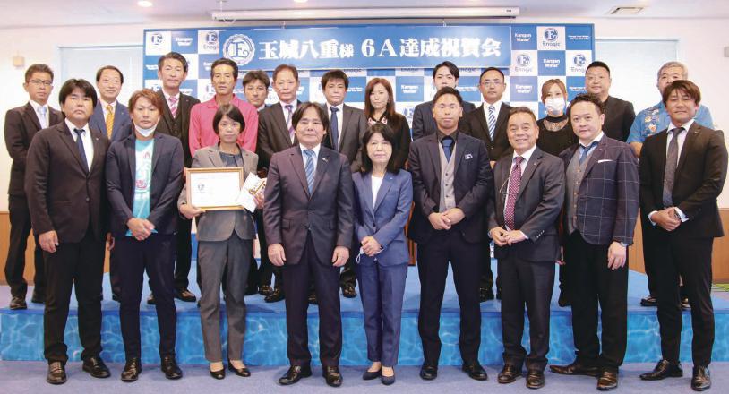 このあと、玉城八重さんを祝う場に移り、最初に大城会長から玉城さんに6A認定証とインセンティブが授与されました。これを受け、玉城さんから感謝と今後の健闘を誓うスピーチがありました。