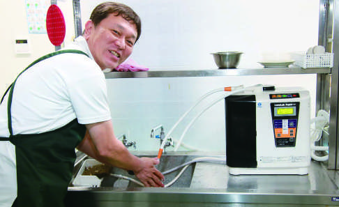 また、強酸性電解水は包丁やまな板などの調理器具の除菌や排水溝の清掃に使って効果をあげている。さらに店内では消臭・除菌効果を期待し、噴霧器によって強酸性電解水を常時噴霧している。
