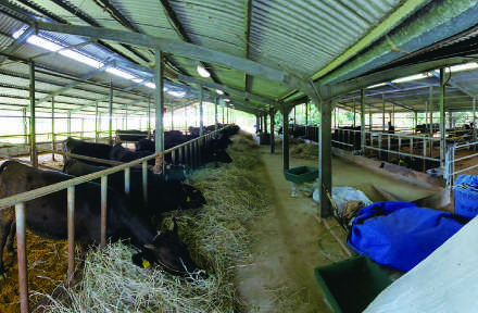 エナジック社員の案内でエナジック瀬嵩カントリークラブの中腹までくると、方向を転じて牛舎に案内された。驚くなかれ、還元水を飲ませてエナジック和牛を飼育しているのだ。まさに珍発想で、大城は“エナジック和牛”の開発に手を出している。